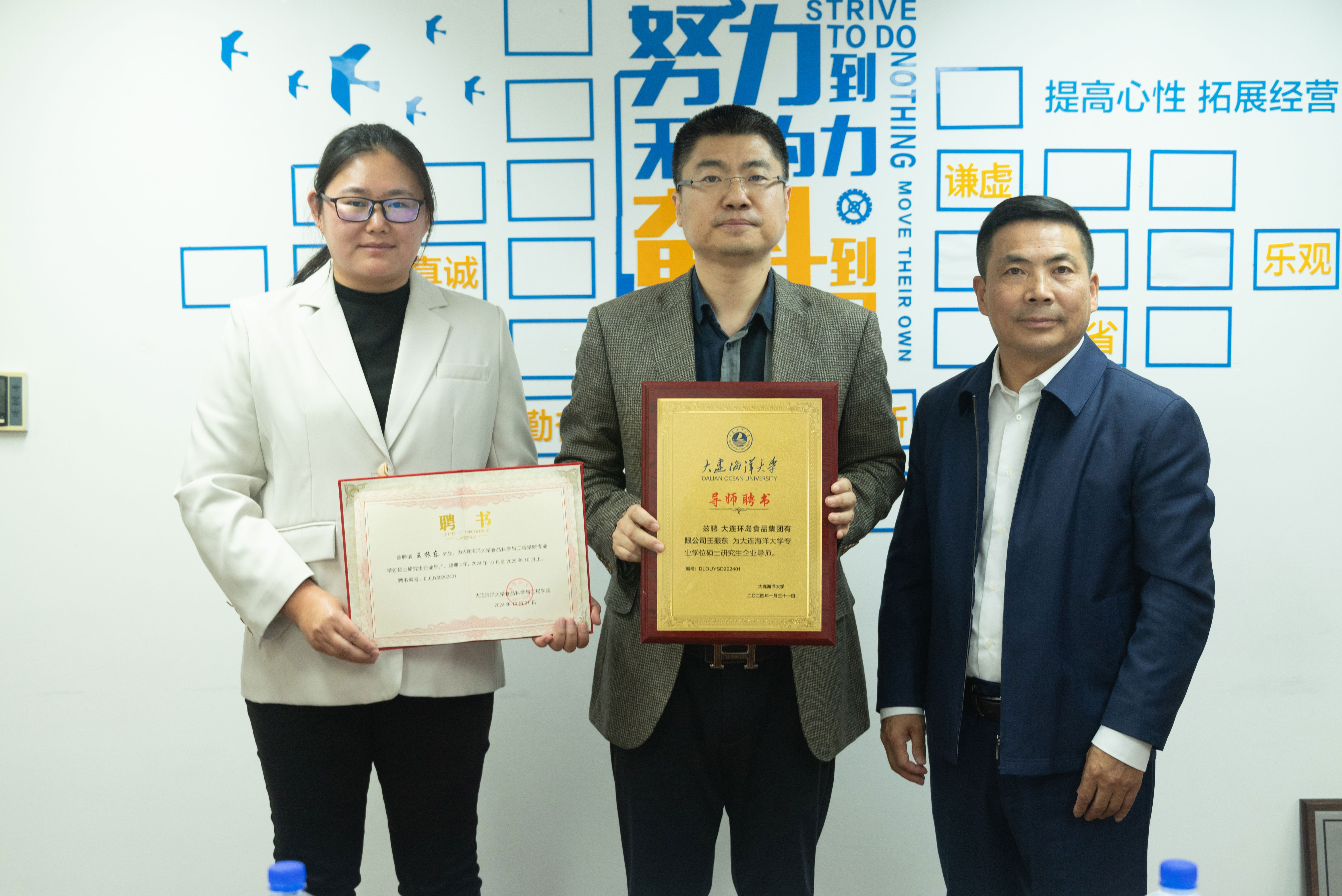 活動(dòng)中,大連海洋大學(xué)食品工程學(xué)院院長(zhǎng)趙前程,副教授李瑩還為王振東董事長(zhǎng)頒發(fā)了專業(yè)學(xué)位碩士研究生企業(yè)導(dǎo)師聘書。